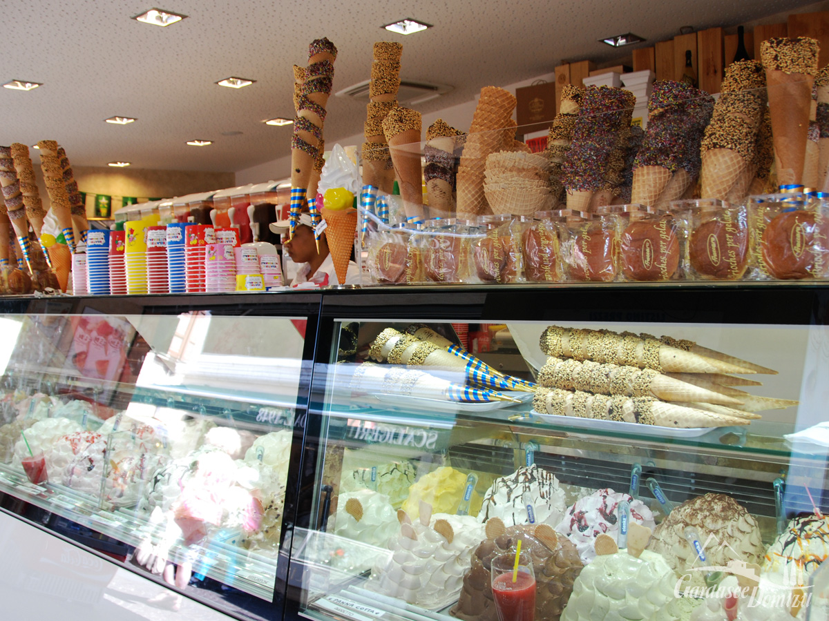 Bieten die Orte rund um den Gardasee schon eine hohe Anzahl an Gelaterien, so scheint sich das in Sirmione noch zu vervielfachen. An fast jeder Ecke kann man ein leckeres Eis kaufen. Besonders in der Via Vittorio Emanuele scheint sich eine Gelateria na die nächste zu reihen. Riesige Berge der exotischsten Eissorten liegen kunstvoll drapiert in den Auslagen und locken die Urlauber. Einheimische sollen die Eisdiele von Gino Mancini zu bevorzugen, die Gelateria mit der längsten Tradition. Kunstvolle Eisskulpturen sucht man hier vergebens. Dafür ist das Eis 100% natürlich und das schmeckt man. Probieren Sie es. Buon Appetito !