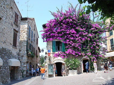 Einigermaßen verschont geblieben von Bausünden ist die Altstadt von Sirmione. Man betritt diese, nachdem man das Auto auf dem großen Parkplatz vor der Stadtmauer abgestellt hat, direkt an der Scaligerburg durch ein Tor in der alten Stadtmauer. Besonders reizvoll ist die Anreise nach Sirmione mit einer der Gardaseefähren, da sich die Halbinsel vom Wasser aus von seiner schönsten Seite zeigt.
